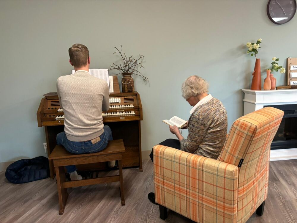 De vrijwilliger speelt 1 à 2 keer per maand op zondagavond orgel op een woongroep. Samen met de bewoners worden er psalmen gezongen.
